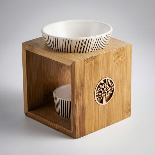Duftlampe aus Bambus mit Keramikschale – Baum des Lebens