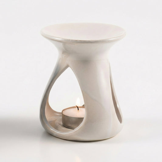 Elegante Duftlampe aus Keramik in Weiß – geschwungene Form