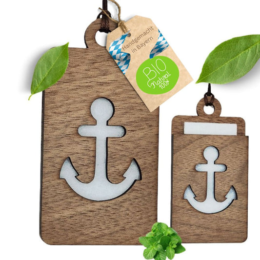 Holz Anhänger für ätherische Öle "ANKER", Duftbaum aus Nussbaumholz mit Filzpad für ätherische Öle
