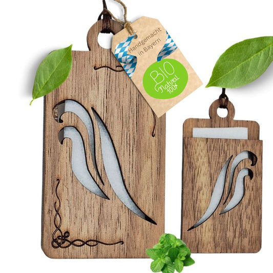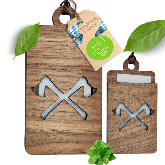 Holz Anhänger für ätherische Öle "AXT", Duftbaum aus Nussbaumholz mit Filzpad fürs Auto
