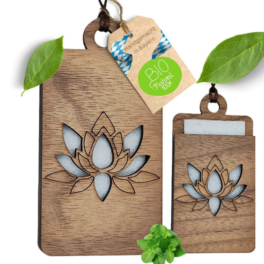 Holz Anhänger für ätherische Öle "BULLE", Duftbaum aus Nussbaumholz mit Filzpad fürs Auto