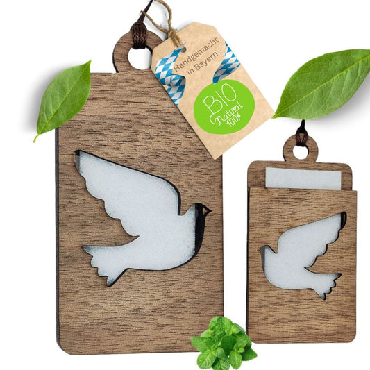 Holz Anhänger für ätherische Öle "TAUBE", Duftbaum aus Nussbaumholz mit Filzpad für ätherische Öle