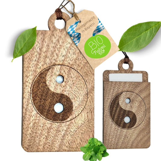 Holz Anhänger für ätherische Öle "YINYANG", Duftbaum aus Nussbaumholz mit Filzpad für Duftöle